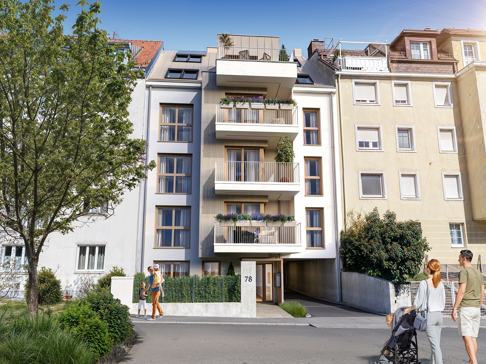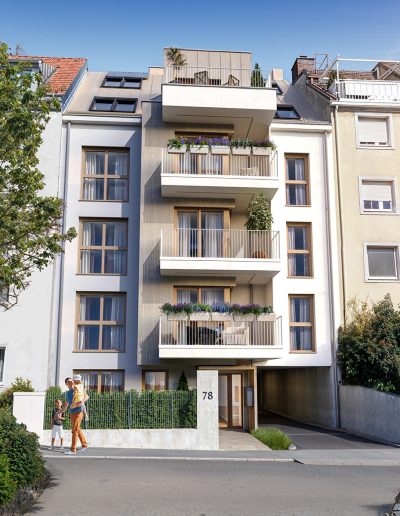 Auf den begehrten Liegenschaften Ferrogasse 78 und Bastiengasse 69 entsteht mit dem Cottage-Ensemble Gersthof ein anspruchsvolles Wohnprojekt mit 14 exklusiven Eigentumswohnungen, verteilt auf zwei architektonisch harmonisch gestaltete Baukörper.